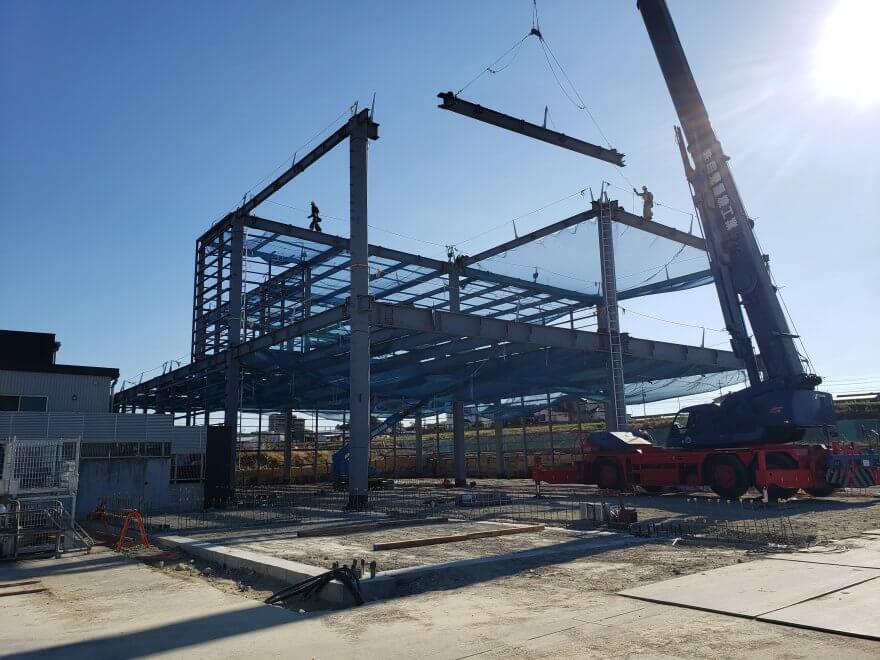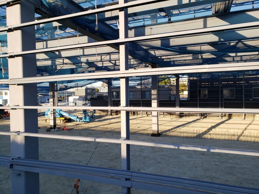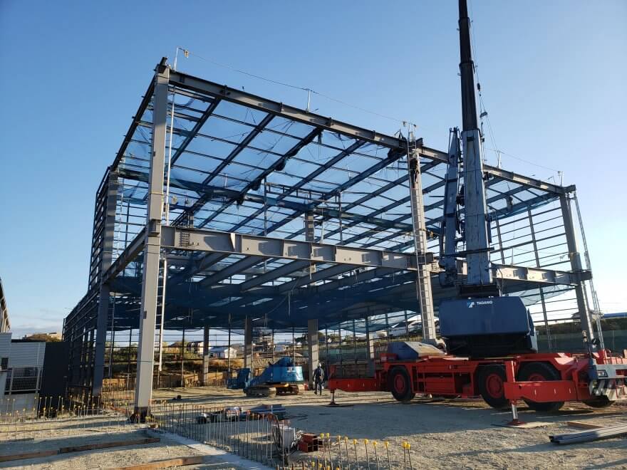 掘削(地盤や岩盤を掘り取ったり削り取ったりする)部分の地下水に泣かされましたが、ようやく鉄骨建方にこぎつけました。