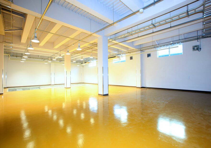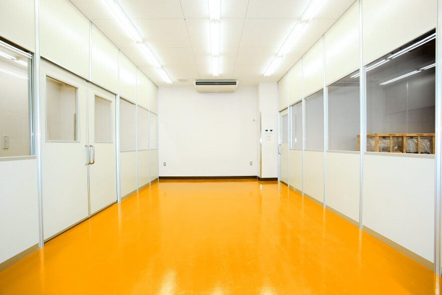 見通しの利く作業場。床材に、あえてビビットな色味を配することで、小さな部品の落下にも気づくことができます。